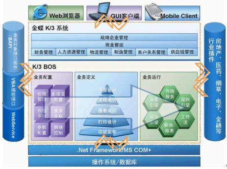 建议开设的实习内容包括系统管理、K/3BOS等功能。主要业务流程如下图所示: