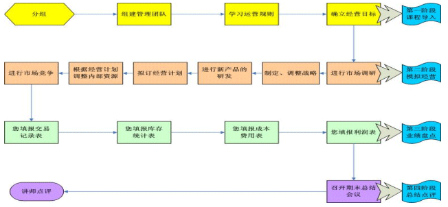 本课程体系是将企业置身于国际化、信息化、瞬息万变的复杂环境中,通过模拟企业的整体运营过程,让学员分析企业内外部环境,制定战略方案、市场及产品决策、生产决策、营销决策、财务决策,体验企业的经营决策过程,从而掌握制定决策的方法,远离决策陷阱和误区,达到提高学员决策能力的目的。课程班由40-50名学员组成,每6-8名学员组成一个公司,分任公司总经理、财务总监、销售总监、生产总监、研发总监、企化部部长等职位,共形成5-6个相互竞争的模拟公司,连续从事六-七期的经营活动。