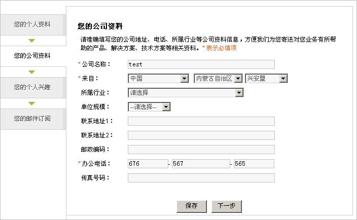 按照页面提示填写好您所属的公司基本资料后,点击“保存”按钮即可保存您所修改的资料。如下图: